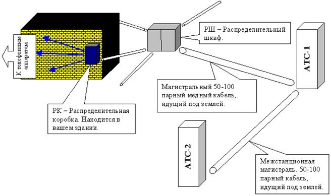 Реферат: Использование цифровой связиРеферат: Использование цифровой связиЦифровая связь, и предпосылки ее использования. Современное поколение уже не удивить словами модем, выделенная линия или “коннект”. Особенно это относиться к “фидошникам” или к людям так или иначе связанным с сетью Интернет. Но часто возникают недопонимания между операторами связи и абонентами, именно из-за проблем модемной связи по коммутируемой или выделенной линии. Кроме того, постоянно в конференциях и “фидошных эхах” идут обсуждения “какие номера с какими лучше вяжутся, какие модемы лучше держат коннект, а какие хуже”. Как это не прискорбно, но такие споры и обсуждения редко рождают истину. В такой ситуации всем сильно не хватает технической поддержки местного оператора связи. Чаще всего все претензии абонента насчет плохих скоростей соединения модемов не принимаются, и ответ прост: изоляция в норме, постороннего нет. А причины плохой связи могут крыться в таких тонкостях, которые в голосовой связи ни когда не проявляются. Для разных типов Автоматических Телефонных Станций (АТС), такие причины могут быть разные. Механические АТС (Координатные и Декадно-шаговые). Это уже устаревшие типы АТС, но, тем не менее, еще используются на территории России ввиду дороговизны новых и тяжелым экономическим положением в стране. И конечно нельзя не упомянуть что кабельное хозяйство российских операторов связи на 40% 60-х годов. Именно на этих станциях обычно не используется никакого оборудования уплотнения, и качество связи зависит только от оборудования механической коммутации. Общая структура взаимодействия АТС и абонентов показана на рисунке: