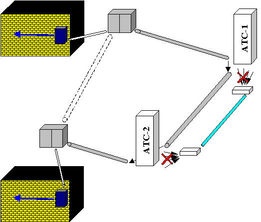 Как видно из рисунка, предоставление абонентам прямой линии требует выделение свободной пары во всех магистралях по пути ее установки. На станцию пара не заходит, а соединяется с парой из следующей магистрали в кроссе. И важным свойством прямой линии является то, что она не заходит ни в ИКМ-тракт или другое оборудование уплотнения, а, следовательно, рабочий диапазон частот не ограничен 3,3кГц и нет потерь из-за временных задержек и дрожания фазы. И последним важным фактором является полная длина прямой (чем больше длина, тем хуже параметры линии), и уже имея этот параметр, можно взяться за выбор модели модемов. В таких случаях рекомендуют либо модемы short-range модемы (модемы “последней мили”), либо широкополосные xDSL модемы с пропускной способностью 2Мбит/с и более. Short-range модемы или модемы "последней мили" - это устройства, используемые для связи между компьютерами, терминалами, контроллерами и другой аппаратурой передачи данных, на сравнительно коротких расстояниях. Например: внутри зданий, в пределах территории кампуса или в границах города. Эти устройства проектируются с целью преодоления ограничений в дальности действия интерфейсов канала передачи данных. Но в последнее время в связи с вытеснением межстанционных медных магистралей ИКМ-трактами, возможность провести прямую линию абоненту в разных районах города (разные АТС) становиться проблемой. Иногда это решается проведением магистралей между распределительными шкафами, а иногда ни каких вариантов кроме ввода в ИКМ-тракт нет. Это наталкивает операторов связи на внедрение современных технологий цифровых сетей. Электронные АТС. В представлении абонента электронные или цифровые АТС - это что-то такое ультрасовременное и недоступное. Хотя в Томске уже более 100000 абонентов обслуживаются именно электронными АТС. Ключевое отличие электронных станций от механических в методе и среде коммутации абонентов.
