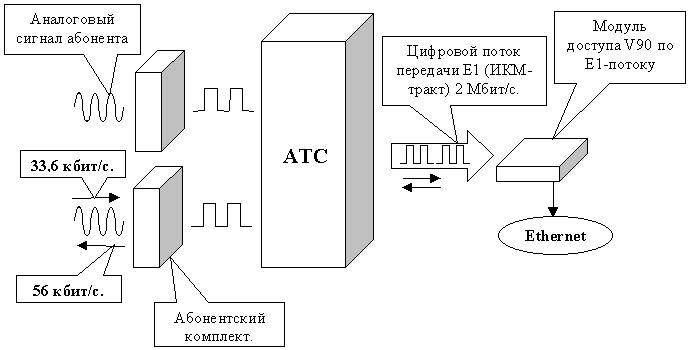 указанием на большие по мощности сигналы их и вызывают при преобразовании. Структурная схема подключения клиентских и серверных модемов использующих протокол v90