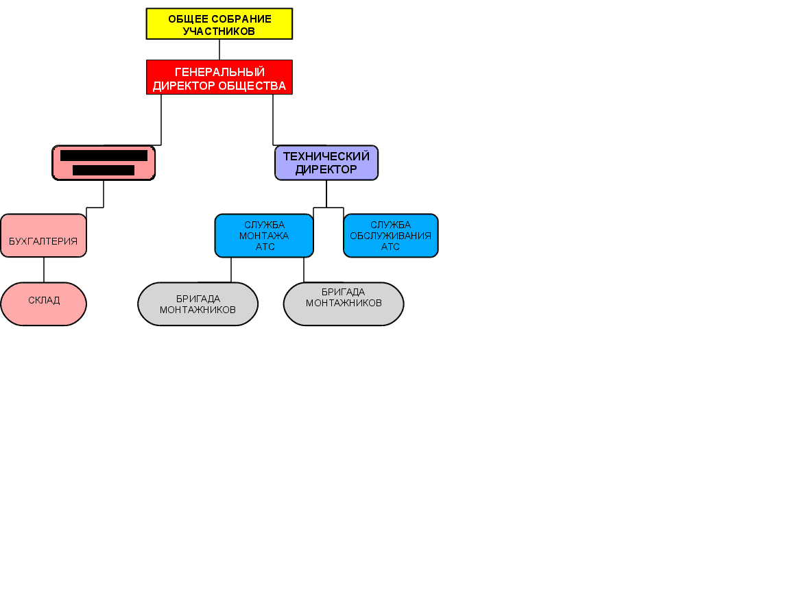 Рис. №5. Организационная структура ООО «Сибирь-связь» Подобный тип организации управления на ООО «Сибирь-связь» следует отнести к иерархической, линейной структуре [11, c.79]. Основы линейных структур составляет так называемый «шахтный» принцип построения и специализация управленческого процесса по функциональным подсистемам организации. По каждой подсистеме формируется иерархия служб, пронизывающая всю организацию сверху донизу. Результаты работы каждой службы оцениваются показателями, характеризующими выполнение ими своих целей и задач. Соответственно строится и система мотивации и поощрения работников. При этом конечный результат (эффективность и качество работы организации в целом) становится как бы второстепенным, так как считается, что все службы в той или иной мере работают на его получение. Преимущества линейной структуры: