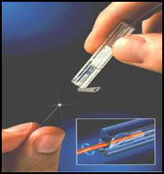 Фиксация "Push-Pull" обеспечивает подключение коннектора к розетке наиболее простым образом - на защелке. Защелка-фиксатор обеспечивает надежное соединение, при этом не нужно вращать накидную гайку. Важное преимущество разъемов с фиксацией Push-Pull - это высокая плотность монтажа оптических соединителей на распределительных и кроссовых панелях и удобство подключения. 5. Электронные компоненты систем оптической связи Теперь давайте коснемся проблемы передачи и приема оптических сигналов. Первое поколение передатчиков сигналов по оптическому волокну было внедрено в 1975 году. Основу передатчика составлял светоизлучающий диод, работающий на длине волны 0.85 мкм в многомодовом режиме. В течение последующих трех лет появилось второе поколение - одномодовые передатчики, работающие на длине волны 1.3 мкм. В 1982 году родилось третье поколение передатчиков - диодные лазеры, работающие на длине волны 1.55 мкм. Исследования продолжались и вот появилось четвертое поколение оптических передатчиков, давшее начало когерентным системам связи - то есть системам, в которых информация передается модуляцией частоты или фазы излучения. Такие системы связи обеспечивают гораздо большую дальность распространения сигналов по оптическому волокну. Специалисты фирмы NTT построили безрегенераторную когерентную ВОЛС STM-16 на скорость передачи 2.48832 Гбит/с протяженностью в 300 км, а в лабораториях NTT в начале 1990 года ученые впервые создали систему связи с применением оптических усилителей на скорость 2.5 Гбит/с на расстояние 2223 км. Появление оптических усилителей на основе световодов способных усиливать проходящие по световоду сигналы на 30 dB, дало начало пятому поколению систем оптической связи. В настоящее время быстрыми темпами развиваются системы дальней оптической связи на расстояния в тысячи километров. Успешно эксплуатируются трансатлантические линии связи США-Европа ТАТ-8 и ТАТ-9, Тихоокеанская линия США-Гавайские острова-Япония ТРС-3. Ведутся работы по завершению строительства глобального оптического кольца связи Япония-Сингапур-Индия-Саудовская Аравия-Египет-Италия. В последние годы наряду с когерентными системами связи развивается альтернативное направление: солитоновые системы связи. Солитон - это световой импульс с необычными свойствами: он сохраняет свою форму и теоретически может распространяться по "идеальному" световоду бесконечно далеко. Солитоны являются идеальными световыми импульсами для связи. Длительность солитона составляет примерно 10 трилионных долей секунды (10 пс). Солитоновые системы, в которых отдельный бит информации кодируется наличием или отсутствием солитона, могут иметь пропускную способность не менее 5 Гбит/с на расстоянии 10 000 км. Такую систему связи предполагается использовать на уже построенной трансатлантической линии ТАТ-8. Для этого придется поднять подводный ВОК, демонтировать все регенераторы и срастить все волокна напрямую. В результате на подводной магистрали не будет ни одного промежуточного регенератора. 6. Лазерные модули для ВОЛС Лазерные модули серии LFO изготавливаются