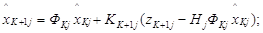 j=x, y, z. Используя критерий Калмана, несложно показать, что такая система является полностью наблюдаема: rank[HT ATHT (AT)2HT]=n=3, где n - порядок системы. Реализация в бортовом вычислителе дискретного фильтра Калмана сводится к оценке вектора состояния по следующим соотношениям: