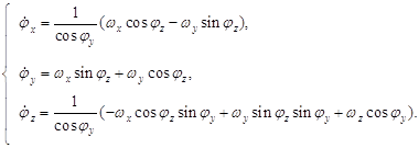 кинематические уравнения, связывающие угловые скорости wj с углами поворота триэдра осей Oxyz