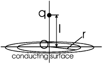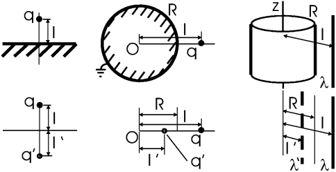 заземленная сфера q → q' = –qR/l, l → l' = R2/l цилиндр λ → –λ, l → l' = R2/l Если сфера не заземлена, то надо еще дополнительно поставить заряд +qR/l в начало координат. Цилиндр и плоскость заземлены по определению (они простираются до бесконечности, где φ = 0). Основным практическим случаем является проводящая плоскость: например Земля. Он легко обобщается на систему зарядов (нитей, колец и т. д.) - всю ее надо отобразить относительно плоскости. Задача. Точечный заряд q находится на расстоянии l от проводящей плоскости. Найти плотность индуцированного заряда как функцию расстояния r от проекции заряда на плоскость. Ответ: