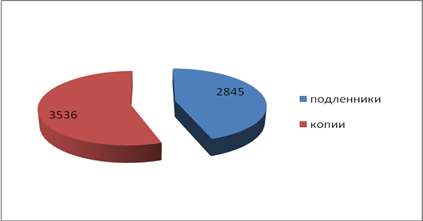 Рис. 6. Диаграмма – соотношение подлинников и копий документов. (Составлено автором). Соотношение всех созданных документов в организации показывает диаграмма (см. рис. 7, с. 75).
