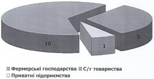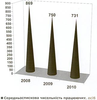 Рисунок 3.7 Структура діючих виробників с/г продукції Середньоспискова чисельність працюючих у сільськогосподарських підприємствах на кінець 2010р. показав спад із 869 осіб у 2008р. до 731 особи у 2010р. - 16% (Рис.3.8).