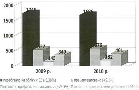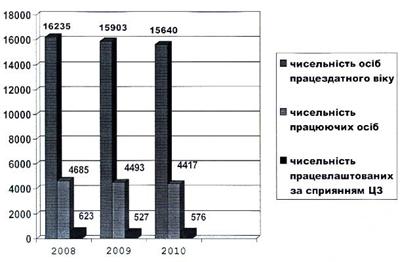 Рисунок 3.5 Динаміка середньооблікової чисельності зайнятого населення Динаміка реєстрації та розірвання трудових договорів підприємців з найманими особами за період 2008 - 2010рр. мав спад у 2009р., але підняття у 2010р. Хоча в порівняні з 2008р. він збільшився майже на 1% (Рис.3.6).