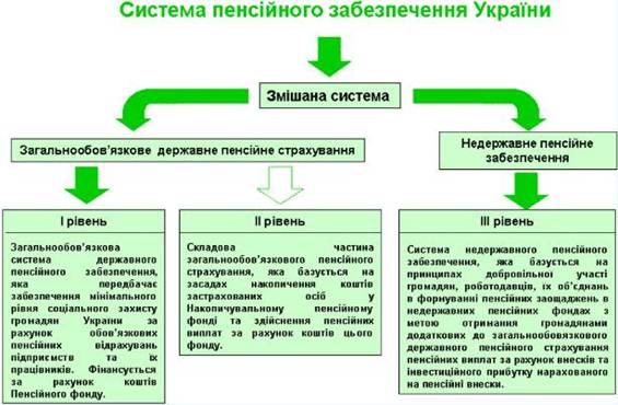 Рисунок 2.1 Система пенсійного забезпечення України Соціальні пенсії призначаються в таких розмірах: а) 30 відсотків мінімального розміру пенсії за віком: особам, які досягли пенсійного віку (чоловіки - 60 років, жінки - 55 років) і не набули права на трудову пенсію без поважних причин; б) 50 відсотків мінімального розміру пенсії за віком: особам, які досягли пенсійного віку (чоловіки - 60 років, жінки - 55 років) і не набули права на трудову пенсію з поважних причин; інвалідам III групи; в) 100 відсотків мінімального розміру пенсії за віком: інвалідам II групи; дітям-інвалідам віком до 16 років; дітям (діти, брати, сестри й онуки, які не досягли 18 років або старші цього віку, якщо вони стали інвалідами до досягнення 18 років, при цьому брати, сестри й онуки за умови, якщо вони не мають працездатних батьків), а також у разі втрати годувальника одному з батьків, або чоловіку (дружині), або діду, бабі, брату чи сестрі, незалежно від віку і працездатності, якщо він (вона) зайнятий доглядом за дітьми, братами, сестрами чи онуками померлого годувальника, які не досягли 8 років, і не працює; г) 200 відсотків мінімального розміру пенсії за віком: інвалідам І групи; матерям, яким присвоєно звання “Мати-героїня" [34, с.159]. За оперативними даними, протягом 2010 року органами ПФУ забезпечено виплату пенсій та грошової допомоги з урахуванням їх підвищень 13,7 млн. пенсіонерів. Загальний обсяг видатків на пенсійні виплати склав 165 693 млн. грн. Призначено пенсії понад 698 тис. громадянам, 609 тис. осіб проведені перерахунки пенсій з урахуванням стажу та заробітної плати після призначення (попереднього перерахунку) пенсії, з 1 листопада перераховано пенсії 13,8 млн. осіб (у зв’язку із збільшенням прожиткового мінімуму). Середній розмір пенсії збільшився з 972 грн. у грудні 2009 до 1093 грн. у грудні 2010 року. До Пенсійного фонду з усіх джерел фінансування протягом 2010 року, за оперативними даними, надійшло 148 380,9 млн. грн., з яких власні доходи становили 99 781,7 млн. грн. З Державного бюджету України на фінансування пенсійних програм та покриття дефіциту коштів Пенсійного фонду для виплати пенсій надійшло 48 540,5 млн. грн. Проведено роботу по залученню пенсіонерів до одержання пенсій через банківські установи. Станом на 1 січня 2011 р. чисельність пенсіонерів, які отримували пенсії через банківські установи, склала понад 5,3 млн. осіб, що становить понад 40 відсотків загальної чисельності пенсіонерів. До соціальних партнерів направлено майже 6,3 тис. звернень щодо платників, які порушують законодавство про оплату праці. Проведено 773 спільні наради, де заслуховувались звіти керівників та власників підприємств, про дотримання законодавства про оплату праці, в засобах масової інформації відбулося 678 спільних публічних виступів. У результаті 3 837 особам збільшено заробітну плату, 4 670 особам - легалізовано, 987 матеріалів направлено до правоохоронних органів, по 10 054 платниках надано інформацію органам місцевої виконавчої влади. За ініціативою Пенсійного фонду ухвалено спільний наказ з Міністерством праці та соціальної політики і Державною податковою адміністрацією, спрямований на зменшення обсягів тіньової заробітної плати, збільшення зайнятості населення та нарахувань страхових внесків. У результаті спільної роботи органами Держнаглядпраці, ДПА, прокуратури, СБУ та МВС надано 4 261 матеріал з питань зменшен