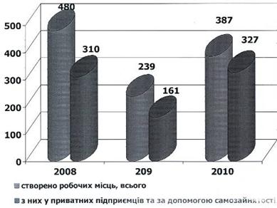 Рисунок 3.3 Динаміка створення робочих місць району Таблиця 3.1 Картка перспективної потреби підприємств у робочій силі на лютий 2011 року
