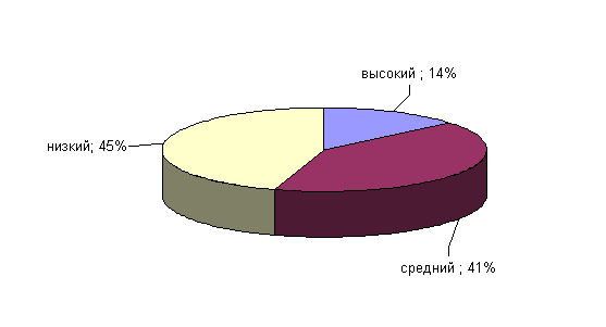 Рис.14. Показатели выраженности фактора I у сотрудниц ОВД Как мы видим из рисунка 14, 14% сотрудниц ОВД имеют высокие значения по данному фактору, что говорит об их слабости , мечтательности, разборчивости, требовательности к вниманию, помощи, зависимый, непрактичный. У 41% сотрудниц ОВД средние показатели по фактору 45% сотрудниц ОВД – практичны, реалистичны, независимый, имеет чувство ответственности, полагаются на себя. Следующий фактор L определяет степень доверчивости 9. Фактор: «доверчивость – подозрительность» . Результаты выраженности данного фактора у сотрудниц ОВД приведены на рисунке 15