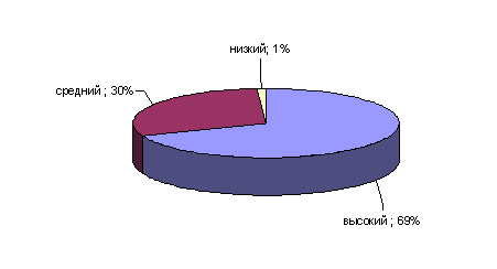 Рис.17. Показатели выраженности фактора N у сотрудниц ОВД Низкие показатели имеет лишь 1% сотрудниц ОВД. Они медлительны, консервативны, препятствуют принятию решения группой. 30% сотрудниц ОВД имеют среднюю выраженность данного фактора. Следующий фактор О определяет степень тревожности результаты его диагностики у сотрудниц ОВД приведены на рисунке 18.