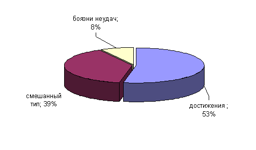 Рис.5. Показатели выраженности ведущих карьерных ориентаций у сотрудниц ОВД Менеджмент является ведущей карьерной ориентации у сотрудниц ОВД 3%. Эти сотрудницы рассматривают свою специализацию как ловушку и признают, что важно знать несколько функциональных областей. Они развивают знания и опыт на уровне своего своей отрасли. Возможности для лидерства, высокого дохода, повышенных уровней ответственности и вклад в успех своей организации являются ключевыми ценностями и мотивами. На стабильность работы ориентированы 16% сотрудниц ОВД. Эти женщины испытывают потребность в безопасности, защите и возможности прогнозирования и будут искать постоянную работу с минимальной вероятностью увольнения, Отличаются невысоким уровнем притязаний. На стабильность места жительства ориентированы 7% сотрудниц ОВД. Для них важнее остаться на одном месте жительства, чем получить повышение или новую работу на новой местности. Переезд для них неприемлем, и даже частые командировки являются для них негативным фактором при рассмотрении предложения о работе. Служение является ведущей ценностной ориентацией для 19% сотрудниц ОВД . Данная категория описывает женщин, занимающихся делом по причине желания реализовать в своей работе главные ценности. Они часто ориентированы больше на ценности, чем на требующиеся в данном виде работы способности. Они стремятся приносить пользу людям, обществу, для них очень важно видеть конкретные плоды своей работы, даже если они и не выражены в материальном эквиваленте. Основной тезис построения их карьеры - получить возможность максимально эффективно использовать их таланты и опыт для реализации общественно важной цели. У 27% сотрудниц ОВД ведущей карьерной ориентацией является вызов .Эти женщины считают успехом преодоление непреодолимых препятствий, решение неразрешимых проблем или просто выигрыш. Для одних вызов представляет более трудная работа, для других это конкуренция и межличностные отношения. Они ориентированы на решение заведомо сложных задач, преодоление препятствий ради победы в конкурентной борьбе. Они чувствуют себя преуспевающими только тогда, когда постоянно вовлечены в решение трудных проблем или в ситуацию соревнования. Карьера для них - это постоянный вызов их профессионализму, и они всегда готовы его принять. Интеграция стилей жизни ведущей карьерной ориентацией является у 7% сотрудниц ОВД. Для женщин этой категории карьера ассоциируется с общим стилем жизни, уравновешивая потребности человека, семьи и карьеры. Они хотят, чтобы организационные отношения отражали бы уважение к их личным и семейным проблемам. Выбирать и поддерживать определенный образ жизни для них важнее, чем добиваться успеха в карьере. Развитие карьеры их привлекает только в том случае, если она не нарушает привычный им стиль жизни и окружение. Для них важно, чтобы все было уравновешено - карьера, семья, личные интересы и т.п. Жертвовать чем-то одним ради другого им явно не свойственно. Автономия и предпринимательство как карьерные ориентации не выражены ни у одной сотрудницы ОВД. 3.1.3 Результаты исследования мотивации успеха и боязни неудач Мотивация достижения — один из вариантов проявления мотивации деятельности, связанный, прежде всего, с преимущественной ориентацией личности на достижение успеха или избег
