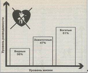 Следует отметить также еще несколько демографических факторов, косвенно влияющих на разводимость. Их влияние так или иначе не может быть оценено однозначно. Это рождаемость и частота заключения браков. Увеличение рождаемости приводит через определенное время к увеличению мужчин и женщин в бракоспособном возрасте. Такая благоприятная возрастная структура населения способствует увеличению числа браков, что в свою очередь увеличивает число потенциальных разводов. Социально-экономические факторыШирокое распространение добрачных зачатий, нежелание супругов обзаводиться детьми, социально-психологические последствия урбанизации, миграция, анонимность отрицательно сказываются на прочности и гармонии семьи. Все это в совокупности, по мнению российского семьеведа А.Г. Харчева, и породило «разводный бум». Так добрачная беременность в разных странах оказывает неоднозначное воздействие на семейную ситуацию. Корреляция добрачного зачатия с частотой разводов существенна в Италии, но незначительна в Дании. Это связано с тем, это явление в разных странах получает различный социальный резонанс: его могут воспринимать как редкое и позорное явление, либо как допустимое и даже банальное. Процесс урбанизации негативно сказывается на разводимости. По статистики уровень разводимости в городах намного выше, чем в сельской местности. И это связано не только с техническим прогрессом, но и с эволюцией брака, представляющей трансформацию брака со времен существования традиционной семьи. На разводимость достаточно сильно влияет социально-экономическое положение супругов. Наибольшее стремление к разводу проявляют богатые люди. Бедных же удерживает от развода финансовое положение и жилищные условия; они просто не могут позволить себе такую роскошь, как развод с разделом имущества, когда его практически и нет. Интересные исследования были проведены на тему «Насколько счастливы сегодня российские семьи?». |