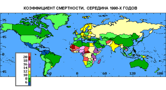 В России же демографическая ситуация обратная мировой. Происходит убыль населения. Теперь Россия стала ежегодно терять по 1 млн. человек. Эти цифры говорят, при учете существенного сокращения продолжительности жизни, о вымирании россиян. Выход видится в повышении уровня жизни россиян и обращении государства к демографической проблеме.