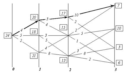 В рассмотренном примере критерий оптимальности — сумма шаговых выигрышей. Но критерий оптимальности может быть построен и как произведение обязательно неотрицательных сомножителей.