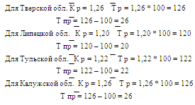 Ip=3,3*62+5,0*24+26,4*16 / 3,2*62+4,8*24+24,0*16\=747 / 697,6 = 1,07, или 107% Индекс показывает, что в мае по сравнению с апрелем цены на данную группу продуктов на рынке выросли в среднем на 7%. 3) Рассчитаем перерасход денежных средств в результате повышения цен на товары: а) по методике Пааше: Δppq=Σ p1q1 – Σ p0q1 = 747 – 697,6 = 49,4 тыс. руб. За счет среднего роста цен перерасход денежных средств населением составил 49,4 тыс. руб. б) по методике Ласпейреса: Δppq=Σ p1q0 – Σ p0q0 = 872,4 – 812,8 = 59,6 тыс. руб. Если население в мае купило бы столько же товаров, что и в апреле, то в результате среднего роста цен переплата составила бы 59,6 тыс. руб. Причины расхождения между величинами данных индексов состоят в том, что значение индексов цен Пааше и Ласпейреса имеют различное экономическое содержание: Индекс Пааше характеризует изменение цен отчетного периода по сравнению с базисным по товаром, реализованным в отчетном периоде, и фактическую экономию (перерасход) от изменения цен, т. е. индекс цен Пааше показывает, на сколько товары в отчетном периоде стали дороже (дешевле), чем в базисном. Экономическое содержание индекса Ласпейреса другое: он показывает, на сколько изменились цены в отчетном периоде по сравнению с базисным, но по той продукции, которая была реализована в базисном периоде, и экономию (перерасход), которую можно было бы получить от изменения цен, т. е. условную экономию (перерасход). Иначе говоря, индекс цен Ласпейреса показывает во сколько раз товары базисного периода подорожали (подешевели) из-за изменения цен на них в отчетном преиоде. АНАЛИТИЧЕСКАЯ ЧАСТЬ 1. Постановка задачи. Целью данной работы является статистическое изучение динамики денежных доходов Тверской, Тульской, Липецкой и Калужской областей, и их сравнительной характеристики. Данные взяты из Российского статистического ежегодника. Исходные данные представлены в таблице 1. Таблица 1 Динамика денежных доходов по областям за 2005 – 2009 год.