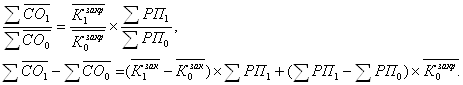 Т.е на один рубль реализованной продукции в среднем за рассматриваемый период приходилось 6,25 коп. стоимости запасов оборотных фондов. Сумму средств, высвобождаемых из оборота вследствие ускорения оборачиваемости оборотных фондов (СОвысв), определяют по коэффициенту закрепления и по продолжительности одного оборота в днях: СОвысв.= (К1-К0)* РП1, где К1 – коэффициент закрепления в отчетном периоде, К2 – коэффициент закрепления в базовом периоде, РП1 – реализация продукции в отчетном периоде. СОвысв.= (В1-В0)* РП1/Д, где В1 – продолжительность одного оборота в днях в отчетном периоде, В2 – продолжительность одного оборота в днях в базовом периоде, Д – число календарных дней. Величина среднего остатка оборотных средств зависит от эффективности их использования и объема реализации. Следовательно, влияние изменения факторов можно определить, используя следующую индексную систему: