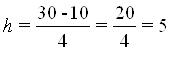 (1) где где n – число единиц совокупности. Определение величины интервала по формуле (1) при заданных k = 4, xmax =30, xmin =10;