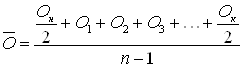 Когда возникает необходимость определить средние остатки оборотных фондов за период времени, включающий несколько равных по продолжительности отрезков (например, по данным за год об остатках на начало и конец каждого квартала), то используется формула средней хронологической: