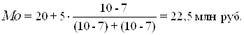 где хМo – нижняя граница модального интервала, h – величина модального интервала, fMo – частота модального интервала, fMo-1 – частота интервала, предшествующего модальному, fMo+1 – частота интервала, следующего за модальным. Согласно табл. 1.3 модальным интервалом построенного ряда является интервал 20–25 млн. руб., так как его частота максимальна (f3 = 10). Расчет моды по формуле (3):