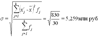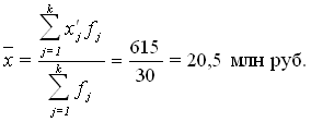 признака для всех 30-ти предприятий, а по формуле (5) средняя вычисляется для