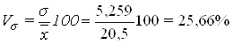 значений показателей Значение Vσ = 25,66% не превышает 33%,