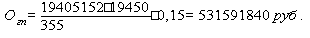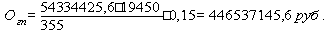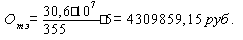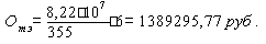 где Тэф – эффективный фонд рабочего времени, руб.; Нз – количество дней. Норматив по запасным частям (Озч, руб.), рассчитываем в размере 2% от общей сметной стоимости оборудования. Озч = 0,02·82919479,5= 1658389,59 руб. Норматив по годовой продукции (Огп, руб.), определяем по формуле: