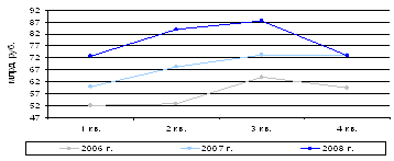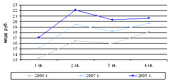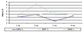 Диаграмма 7 - Динамика ежеквартальных премий по ОСАГО, 2006 – 2008 гг.
