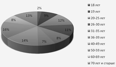 Структура взрослого населения по возрасту выглядит следующим образом: