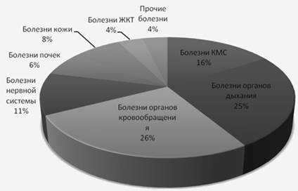 Структура заболеваний среди пациентов дневного стационара выглядит следующим образом: