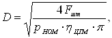 Диаметр гидроцилиндра D, м [8]: где Fшт – сила на штоке гидроцилиндра, Н; рном – номинальное давление в гидросистеме, рном=16 МПа; hцгм – КПД гидроцилиндра гидромеханический, hцгм=0,97. Диаметр гидроцилиндра D, м: