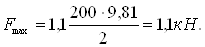 где n5 – коэффициент перегрузки , n5 = 1,2; amax – максимальное ускорение при разгоне или торможении тельфера , amax = 0,67 м/с2 [2].