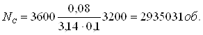 По формуле (2.24) полное число оборотов колеса за срок службы NС , об: