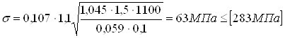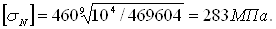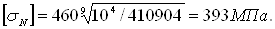 По формуле (2.22) допускаемое напряжение при приведенном числе оборотов N за срок службы [sN], МПа: