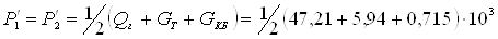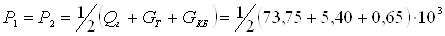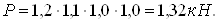 По формуле (2.28) приведенная эквивалентная нагрузка P, кН:
