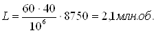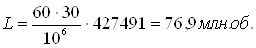 По формуле (2.27) расчетный ресурс L, млн.об:
