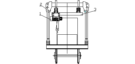 1- тельфер перемещения сварочной головки; 2- портал; 3- поперечная балка Рисунок 2.2 – Схема установки поперечной балки Для установки сварочной головки с одной рельсовой нити на другую обеспечивается поперечное перемещение тельфере 1 по поперечной балки на расстояние 1600 мм. При подготовки машины ПРСМ-3 к работе портал переводят сначала из транспортного положения в нейтральное, а затем в рабочее.