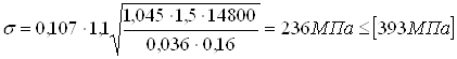 Напряжения смятия при линейном контакте s, МПа [7]: