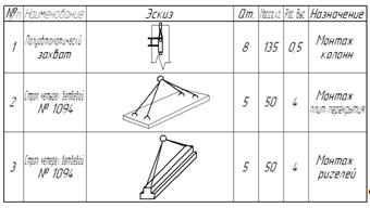 3.8 Расчет степени использования крана 1. Коэффициент использования крана по времени: Кв = (N*Н)/(8*100)=(14*45,41)/(8*100)=0,79=79% N - количество поднимаемых за наиболее нагруженную смену конструкций, Н - норма времени для соответствующих грузов (45,41 маш/ч). 2. Коэффиииент использования крана по грузоподъёмности: Kг=P/Q = 2,3/16=0,14 Р - вес наиболее тяжёлой конструкции, Q - максимальная грузоподъёмность крана. 3.Общий коэффициент: К= Кв*Кг =0,79*0,14=0,11 Использование крана по времени К = 79 %. Таким образом у крана остаётся время для погрузки и раскладки элементов. 3.9 Методы строповки грузов