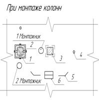 1-фурмочки; кондуктор; 2-колонна; 3-сварочный аппарат; 4-теодалит; 5-монтажка; 6-ящик с инструментом;