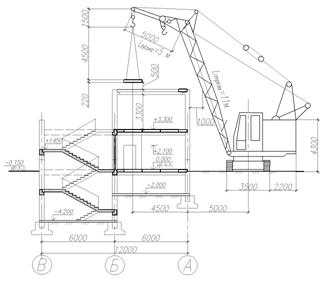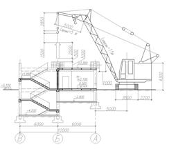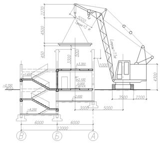 Толщина защитного слоя назначается, согласно п. 5.5 [16], для монолитного фундамента при отсутствии бетонной подготовки b=70мм. объемный планировочный конструктивный технологический 3. Технологический раздел 3.1 Область применения и состав технологической карты Технологические карты это один из основных элементов ППР. содержащий комплекс инструктивных указаний по рациональной технологии и организации строительного производства. Технологическая карта разработана с целью установления способов и методов выполнения отдельных видов работ, их последовательности и продолжительности. Данная техкарта разработана на монтаж; колонн, ригелей, плит покрытия, 2-этажного здания в соответствии со СНиП 3.03.01-87* «Несущие и ограждающие конструкции». Техкарта разработана для производства работ в летнее время. Cостав техкарты: 1. Схема монтажа колонн, ригелей и плит покрытия; 2 Схема подачи колонны, ригеля и плиты покрытия; 3. График производства работ; 4. Контроль качества 5. Указания по производству работ СНиП 3.03.01-87 6. Техническая характеристика крана МКГ-16 7. Организация рабочего места 8. Указания по технике безопасности 9. Методы строповки грузов 3.2 Выбор способов производства работ Техкарта разработана на возведение двухэтажного здания без подвала. Монтаж строительных конструкций осуществляется со склада. Все подготовительные операции и процессы выполняются непосредственно на строительной площадке. Для возведения здания применен поэлементный метод монтажа. Работы ведутся методом на кран. Весь комплекс монтажных работ делится на строительные потоки: · Монтаж колонн · Монтаж плит и ригелей На технологической карте показан монтаж колонн, ригелей и плит покрытия. В качестве грузоподъемного механизма принят самоходно-стреловой кран. При монтаже колонн, ригелей и плит кран движется по периметру здания. Деление здания на захватки в виду небольших размеров здания не производиться. 3.3 Ведомость подсчетов объемов работ