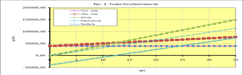BEP- точка безубыточности, TFC- величина постоянных издержек, VC- величина переменных издержек на единицу продукции, P- стоимость единицы продукции (реализация), C- прибыль с единицы продукции без учета доли переменных издержек (разница между стоимостью продукции (P) и переменными издержками на единицу продукции (VC)) (рис. 1). ВЕР = TFC/C = 39500/4300 =9,1 ВЕР= ТFC/P-VS=39500/5350-1050=9,1 4300 – выручка фирмы с установки 1 кондиционера 1050 – переменная затрата на установку 1 кондиционера 5350 – средняя стоимость установки кондиционера