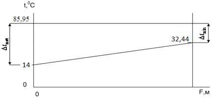 изменения температур теплоносителя вдоль поверхности нагрева t=f(F) и