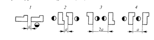 Рис.2 Примерные минимальные нормы расстояний между оборудованием: 1— по фронту; 2 — между тыловыми сторонами; 3 — фронтом друг к другу; 4 — в затылок. Расстояние а) для малогабаритного оборудования — 500 мм, для среднегабаритного — 600 мм, для крупногабаритного - 800 мм Примерные нормы расстояний, мм Ширина проходов между торцами станков или верстаков 800мм Ширина проходов между рядами 1200мм Ширина проезда в центре мастерско.2000мм Расстояние от стены или колонны до тыльной стороны станка 50мм Расстояние до другого станка 800— 1000мм В зависимости от конфигурации помещения и вида освещения применяется фронтальная и линейная расстановка оборудования.