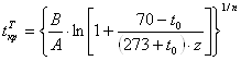 где, В — размерный комплекс, зависящий от теплоты сгорания материала и свободного объема помещения, кг; to — начальная температура воздуха в помещении, равная 20°С; n=2 - показатель степени, учитывающий изменение массы выгорающего материала во времени; Q=13,8 МДж кг-1 — низшая теплота сгорания древесины; Ср=1040 МДж /кг*К —удельная изобарная теплоемкость газа; V= η = 0,99 - коэффициент полноты горения древесины; φ = 0,75 коэффициент теплопотерь; А=