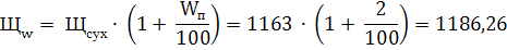 Номинальный состав на 1 м3 бетонной смеси Ц = 350 кг Щ = 1163 кг П = 651,5 кг В = 200 л. В результате расчета получаем номинальный (лабораторный) состав бетонной смеси на 1 м3. Однако в условиях производства необходимо учитывать влажность заполнителей. Поэтому производим перерасчет расхода песка, щебня и воды затворения и определяем рабочий состав бетонной смеси. Принимаем влажность песка и щебня Wп = 5%, Wщ = 2%, тогда