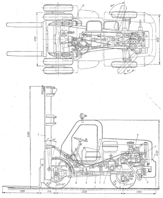 Рисунок 1. Схема автопогрузчика 4045М. Определим масштабный коэффициент