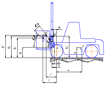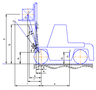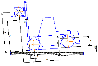 Вылеты центра тяжести грузоподъёмника и груза от оси передних колёс при наклоне можно определить по формулам: