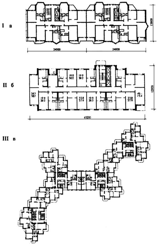 Курсовая работа: Многосекционные жилые дома. Композиционное решение рынков и торговых центровКурсовая работа: Многосекционные жилые дома. Композиционное решение рынков и торговых центровСодержание 1. Многосекционные жилые дома 2. Объемно-планировочная структура основных типов многосекционных жилых зданий Торговый центр жилого района Крытые рынки Эркеры Подвесные потолки 1. Многосекционные жилые домаСекционные жилые дома - это здания, состоящие из нескольких однотипных по структуре планировки блок секций, различающихся по этажности, протяженности и конфигурации. Секция - это часть жилого дома, квартиры которой имеют выход на одну лестничную клетку общего пользования и которая отделена от других частей здания глухой стеной или сплошной межквартирной перегородкой (двойная с воздушным зазором). Планировочное решение секции зависит от числа квартир, выходящих на поэтажную лестничную площадку. Принимая во внимание, что многочисленные семьи планируется расселить в усадебных и блокированных домах, квартиры в жилых секциях должны быть одно-, двух- и трехкомнатными (для малых и средних по величине семей). Рекомендуется разрабатывать блок-секцию с тремя или четырьмя квартирами на этаже. Ориентация квартир должна отвечать требованиям инсоляции - обеспечивать прямое попадание солнечных лучей в одно-, двух - и трехкомнатных квартирах не менее чем в одной комнате. Рациональность решения объема здания во многом определяется и обеспечением минимальных теплопотерь. Это достигается за счет увеличения ширины корпуса, расположения в средней части помещений, не нуждающихся в естественном освещении, примыканием к наружным стенам узкой стороны жилой комнаты. В без лифтовых многосекционных домах малой и средней этажности (2-5-этажных) применяются чаще всего двухмаршевые лестницы, размещаемые в середине секции или со стороны двора (если это совпадает с северной ориентацией) или с северной стороны дома - для увеличения количества жилых комнат, выходящих на благоприятную сторону горизонта. Чаще всего жилые секции проектируются на основе прямоугольной модульной координационной сетки, что в большей степени соответствует естественной форме элементов квартиры (жилых и подсобных помещений, лестничных маршей), технологии более экономичного возведения зданий и т.д. Однако творческое сочетание простых в плане блок секций может привести к созданию разнообразных по композиционному строю и выразительности жилых комплексов. Для этого применяют как минимум три основных типа секций: рядовые, торцевые и поворотные. Рядовая секция - это секция, как правило, прямолинейного очертания, находящаяся между двумя другими частями жилого дома. Торцевые секции располагаются по краям дома. Одна из стен секции должна блокироваться с соседней рядовой секцией. Зачастую торцевая секция повторяет планировку рядовой секции с изменением конструкции торцевой наружной стены. Она может быть глухой или с оконным проемом, лоджиями или балконами. Поворотные секции применяют для формирования домов сложной конфигурации. Наиболее часто встречаются угловые секции с поворотом на 135 или 90 градусов. Поворотные секции проектируются как рядовыми, так и торцевыми. Секции различной конфигурации, этажности, числа и типов квартир объединяются в одну серию. Секции в рамках о