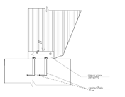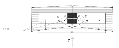 Коньковый узел решается с помощью двух стальных креплений из упорного листа и двух фасонок с отверстиями для болтов . Расчет конькового узла производится на действие максимальных продольной N = 0,042 МН и поперечной Q = 0,018 МН сил. Проверка торцевого сечения на смятие под углом α = 16°42' к волокнам древесины. Расчетное сопротивление смятию Rсмα= Rсм/[1 + Rc/(Rсм90— l)sin3α) = 18,5/ /[1 + 18,5/(3 — 1)0,293] = 16,8 МПа. Площадь смятия А = 0,14*0,30 = 0,042 м2. Напряжение σ=N/A=0,042/0,42= 10 МПа< Rсмα Определение числа болтов крепления конца полуарки к фасонкам. Принимаются болты диаметром d = 2 см. Они работают симметрично при числе швов nш= 2 и толщине сечения полурамы b = c= 14 см под углом смятия а= 90° — 7°13' = 82° 47' к волокнам древесины. При этом Ka=0,52 в соответствии со СНиПом. Несущая способность болта в одном срезе: при изгибе Тн = 2,5d2√ Ka. = 2,5*22у0,52 = 7,2 кН по смятию древесины Тс= 0,5bcdKa = 0,5*14*2*0,52 = 7,3 кН. Требуемое число болтов п = Q/ Тн *n=42/(7,2*2) = 2,9 шт. Принято три болта диаметром d = 20 мм.